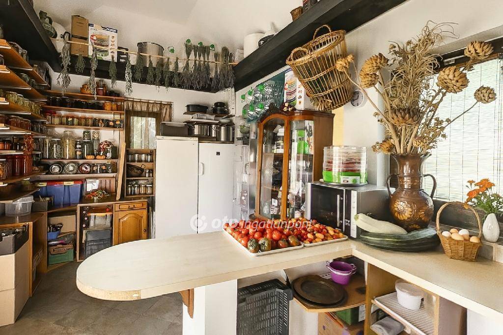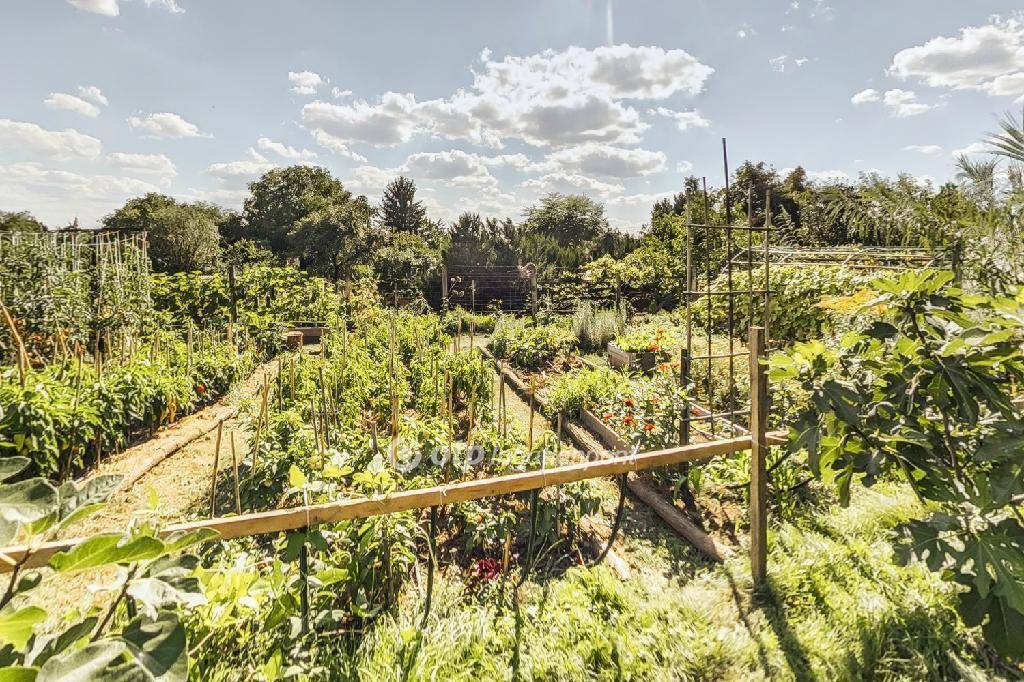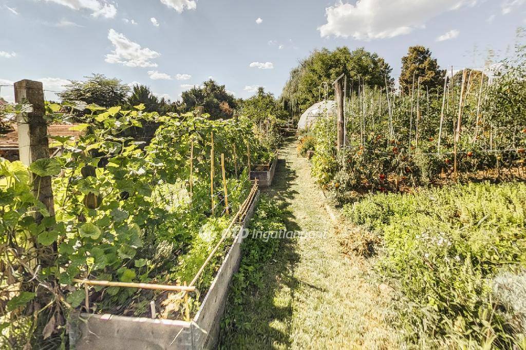 Az irányárba beletartozik egy 3180m2-es belterületi kert, mely átminősítést követően akár 3 építési telekké is osztható. Ezen terület egy része jelenleg művelés alatt áll és számos zöldség- és fűszernövénynek ill. gyümölcsfának ad otthont. A kertben 30db magaságyás, egy fúrt kút, tiszta és jó minőségű vízzel, 66db fügefa, szőlő és egy 40m2-es klímás termesztőház is megtalálható. Az örökzöldekkel körülölelt telkek teljesen privátak, az utcáról szinte egyáltalán nem lehet belátni. Fontos kiemelni, hogy a kert és a teljes terület 25 éve vegyszermentesen művelt és gondozott!