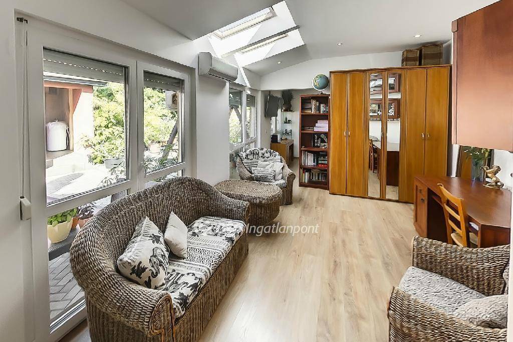 A 15m2-es különálló, összközműves, klímával, ipari árammal, vizesblokkal ellátott üzlethelyiség sokféle vállalkozásra, üzletnek, irodának, műhelynek...etc., kiválóan hasznosítható. Utcafronti parkolóval, külön térköves, örökzöldekkel parkosított járdával és bejárattal biztosítja a teljes elszaparáltságot a háztól garantálva az ott élők nyugalmát.