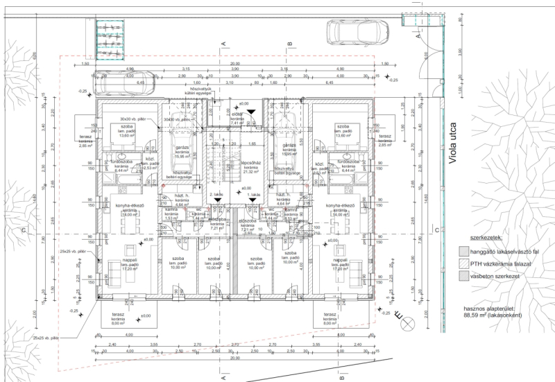 -Lakás alapterület:88,6 m² + garázs 16 m² + teraszok 8 m² és 2,85 m²