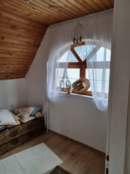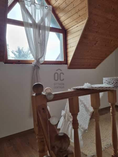 A ház tágas és világos belső tereit nagy ablakok töltik meg fénnyel. A földszinten a család szíve, a nagy nappali cserépkályhával és a konyha-étkező, valamint egy fürdőszoba + WC található. Az emeleten három szoba és egy külön WC biztosít kényelmes elvonulási lehetőséget.