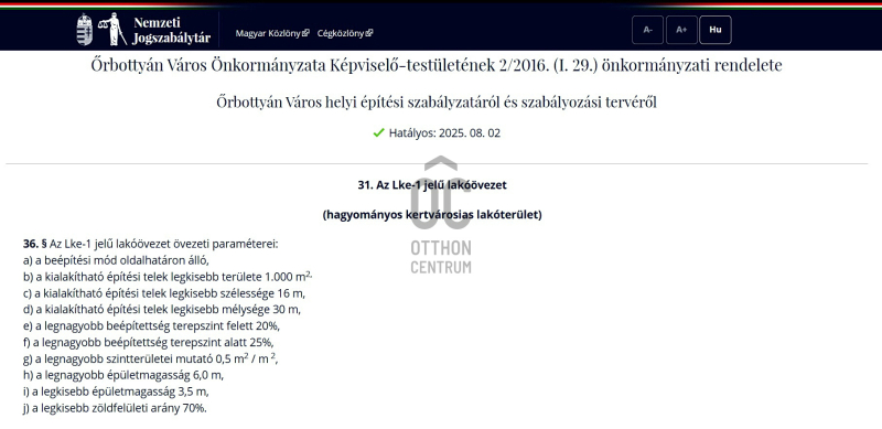 ŐRBOTTYÁN HAMAROSAN MEGÉPÜLŐ ÚJ VÁROSKÖZPONTJÁNAK KÖZELÉBEN, NAGY ÉRTÉKŰ CSALÁDI HÁZAKKAL / IKERHÁZAKKAL FOLYAMATOSAN BEÉPÜLŐ, CSENDES, NYUGODT ÉS ÁTMENŐ FORGALOMTÓL MENTES, ASZFALTOZOTT (ZSÁK)UTCÁJÁBAN, LKE-1-ES JELÖLÉSŰ (HAGYOMÁNYOS KERTVÁROSIAS LAKÓTERÜLET) ÉPÍTÉSI ÖVEZETBE TARTOZÓ, BELTERÜLETI, 1000 M2 ALAPTERÜLETŰ, DÉLNYUGATI TÁJOLÁSÚ, ÖSSZKÖZMŰVES (A TELKEN BELÜL VILLANY-, GÁZ-, VEZETÉKES VÍZ ÉS CSATORNA BEKÖTÉSSEL IS MÁR RENDELKEZŐ(!!!), CSALÁDI HÁZ VAGY IKERHÁZ ÉPÍTÉSÉRE IS KIVÁLÓAN ALKALMAS, ÖRÖK PANORÁMÁS, ENYHÉN LEJTŐS ÉPÍTÉSI TELEK ELADÓ !!!