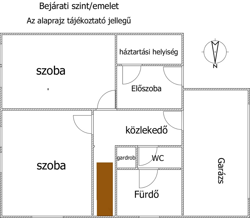 A bejárati szinten található a két nagy autó elhelyezésre alkalmas dupla garázs és a ház főbejárata.