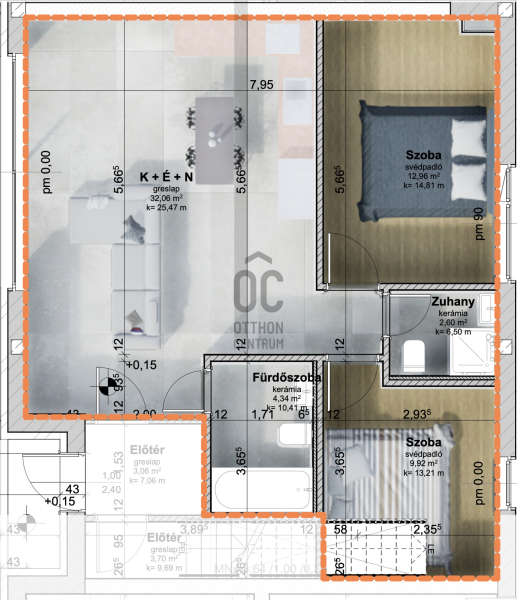 Igény esetén helyiségenkénti termosztátos vezérlés és okosotthon rendszer is kialakítható.