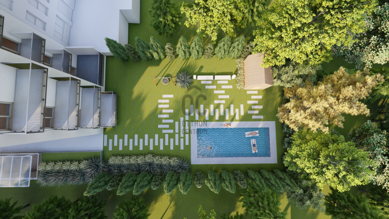 -Wellness részleg! A társasház rendelkezni fog kültéri medencével és szaunaházzal!