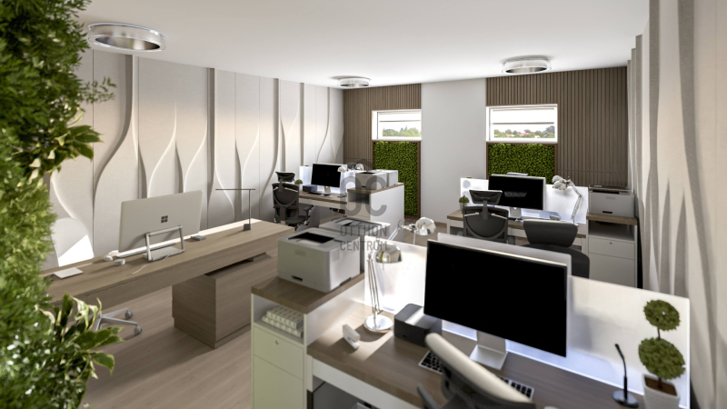 - Fa-alumínium nyílászárók, hőszivattyús hűtés-fűtés, valamint előkészített okosotthon-rendszer garantálja a modern munkakörnyezetet.