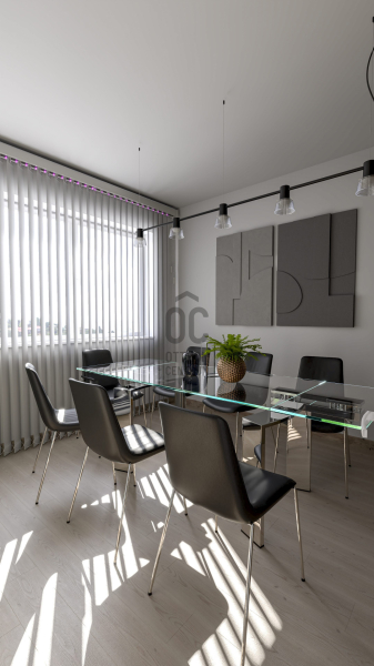 - 330 cm-es belmagasságának köszönhetően tágas, reprezentatív tereket kínál, amely ideális ügyfélfogadásra vagy csapatmunkára.