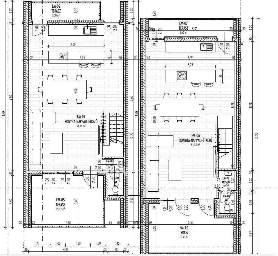 Amerikai konyhás nappali 54,5 m2