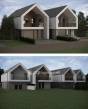 Ikerház területe áll: 105, m2 lakótér + 23 m2 teraszok + 15,9 m2 garázs, azaz 120,2 m2 hivatalosan.