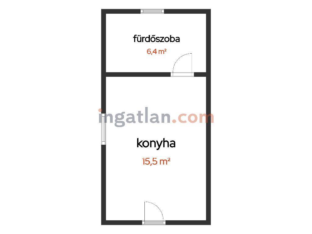A főépület 55,4 nm, mely tégla alapon vályog falazattal épült, elosztása előtér és 4 szoba. A melléképület 21,9 nm, beton alapon, tégla falazattal készült, így akár külön lakrészként is hasznosítható.