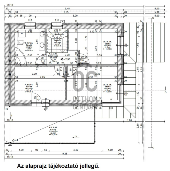 *tágas, 22 m²-es erkély, amely az egyik szobából közvetlenül elérhető