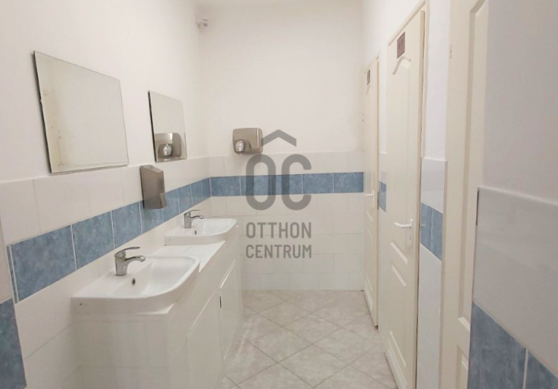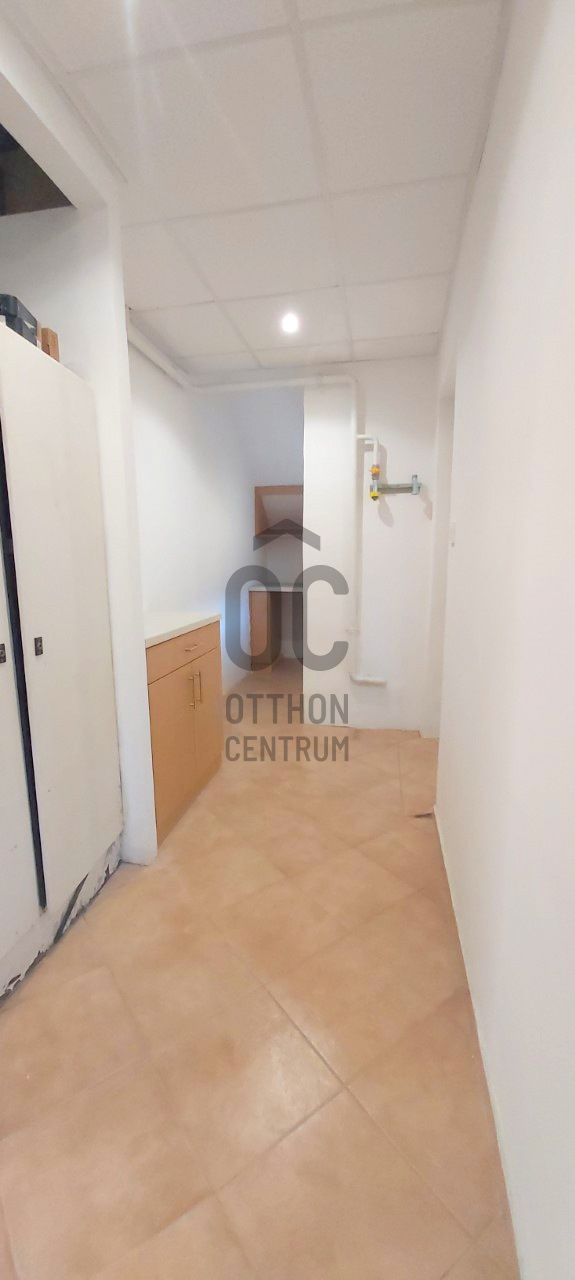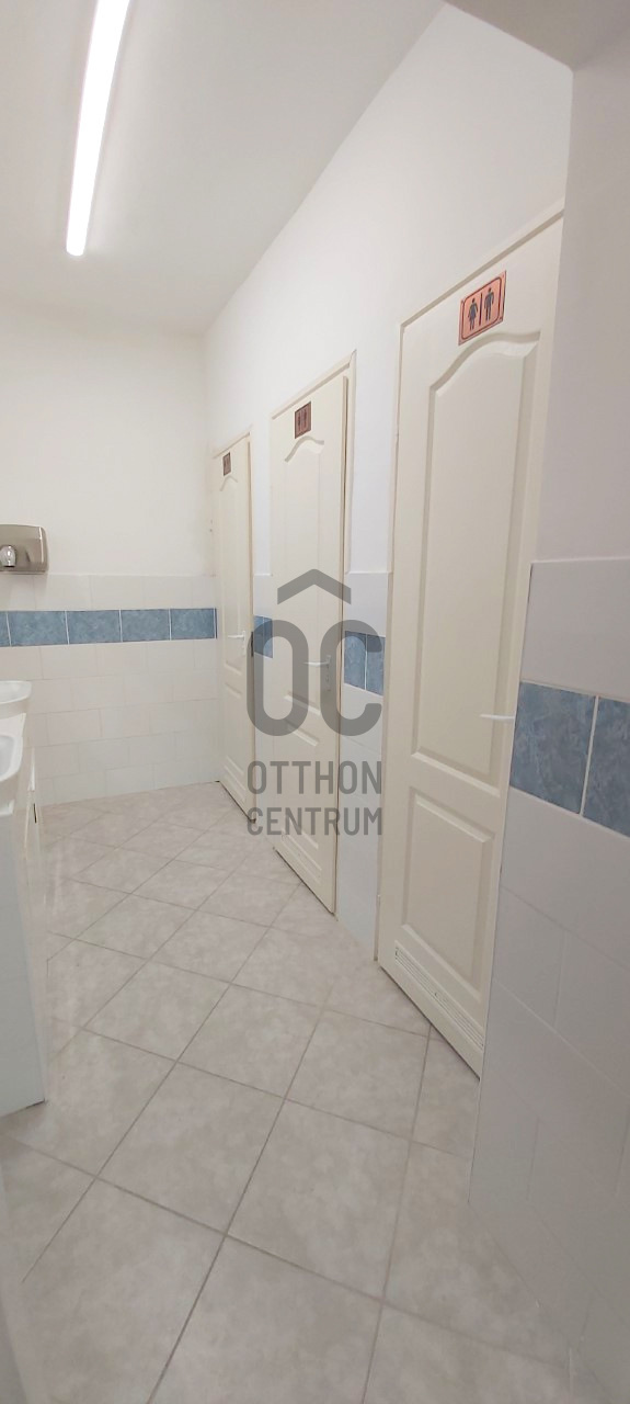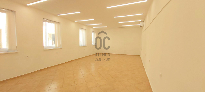 A 110m2-en, egy tágas előtér, 2 nagyobb helyiség, teakonyha, közlekedő, raktár és szoc.blokk (3 toalett, kézmosóval) található. A helyiségek kerámia lappal burkoltak, a világitás leddes világitótestekkel lett kialakítva. A hőmérsékletet szinten tartását 3 db Klíma biztosítja, szükség esetén a gáz bent van ingatlanban. Az áramhálózat ipari tevékenység kialakítására is alkalmas.