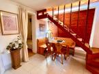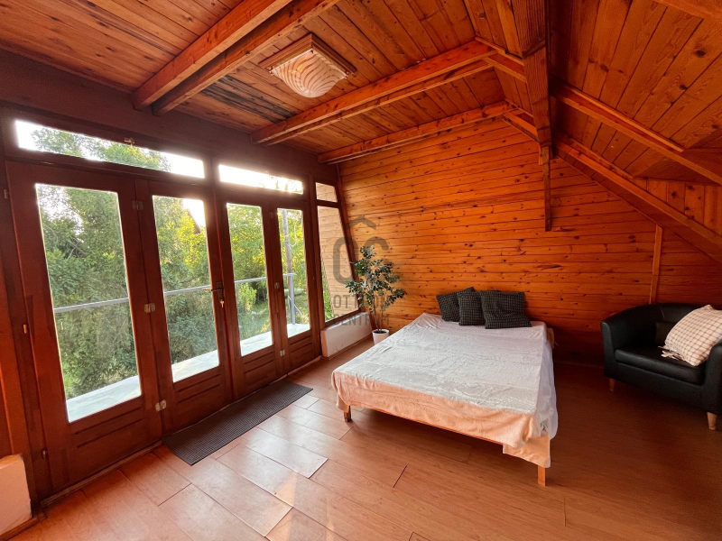 Elosztását tekintve a földszinten egy nappali-étkező, konyha, fürdőszoba, valamint 2 hálószoba található. A tetőtér jelenleg egy nyitott térből álló hálószoba, melynek egészéből a Balaton vizére és partjára kapunk csodás rálátást.