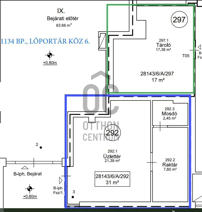 Tároló: 17 m² (egybenyitható az üzlettel)