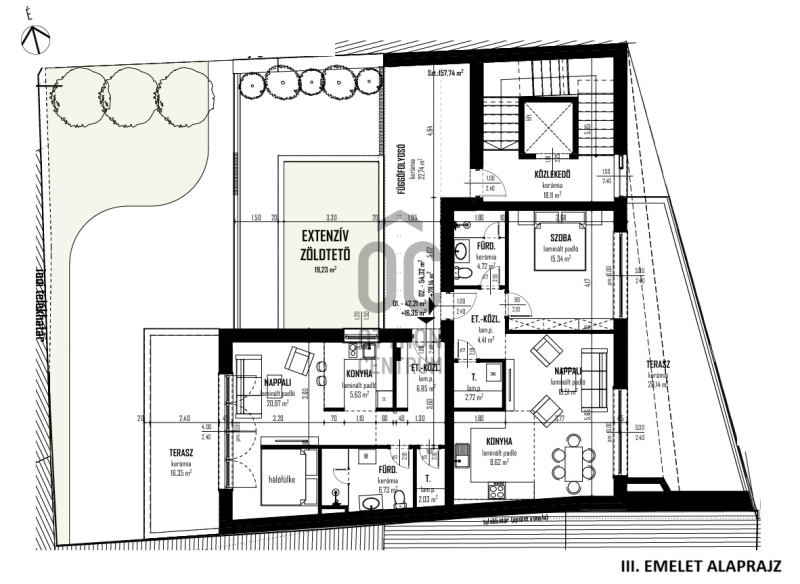 A III. emeleten 2 lakás, melyből az egyik garzon, míg a másik nappali + 1 hálós.