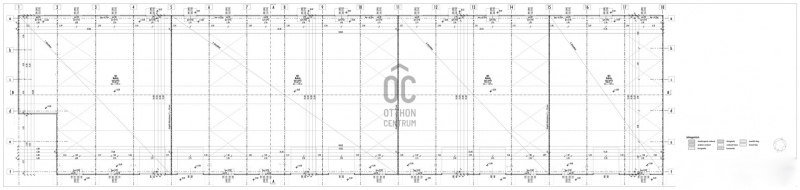 Csarnoképület alapterülete: 2.429 m² + galéria → összesen 2.576 m²