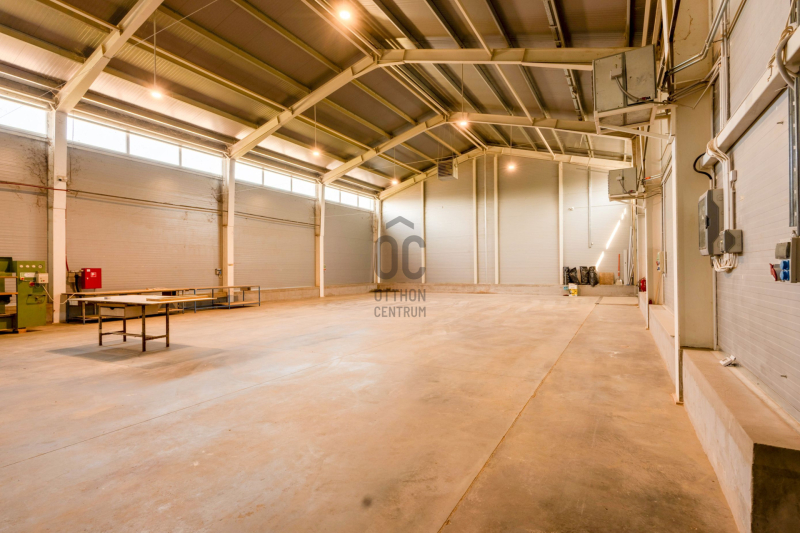 A korszerű, 390 nm-es, 9 m belmagasságú csarnok alkalmas többek közt raktározás, gyártás vagy műhely tevékenységre is.