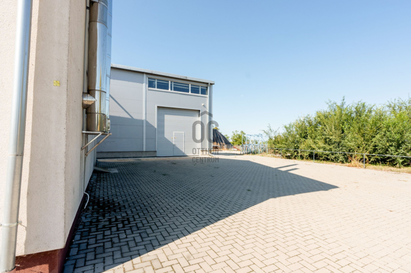 A korszerű, 870 nm-es, 9 m belmagasságú csarnok alkalmas többek közt raktározás, gyártás vagy műhely tevékenységre is.