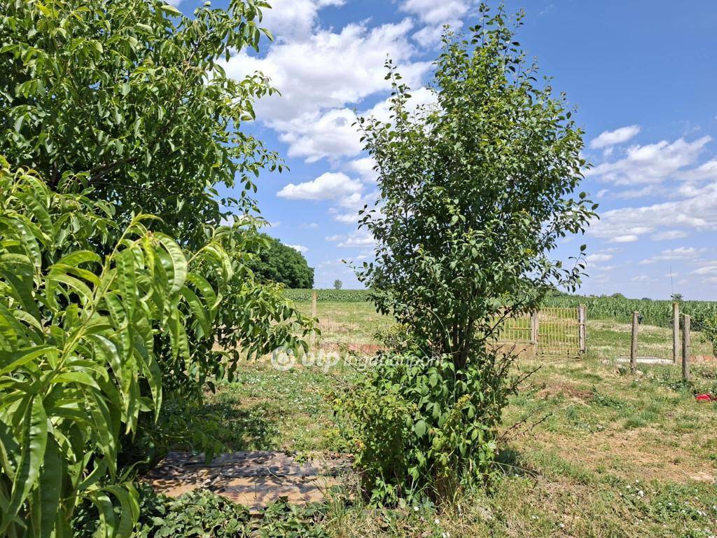 A kert gondozott, gyümölcsfákkal, veteményessel, évelő díszcserjékkel, virágokkal.