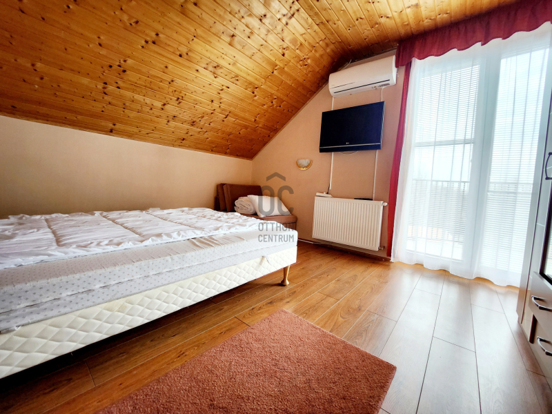 Az ingatlan öt szobával és két fürdőszobával rendelkezik. A földszinten tágas konyha, 2 hálószoba és fürdőszoba WC-vel található, míg az emeleten további 3 hálószoba, konyha és egy további fürdőszoba WC-vel található. A ház kiváló állapotban van. Fűtési rendeszere modern gáz (cirko) fűtés. Minden helyisèg hűtő -fűtő klímával felszerelt, ezen kívül kandalló is rendelkezésre áll.