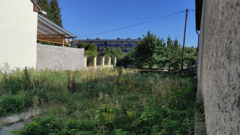 A telek végében a szomszédos ingatlanok kertjei vannak, zöld övezet.
