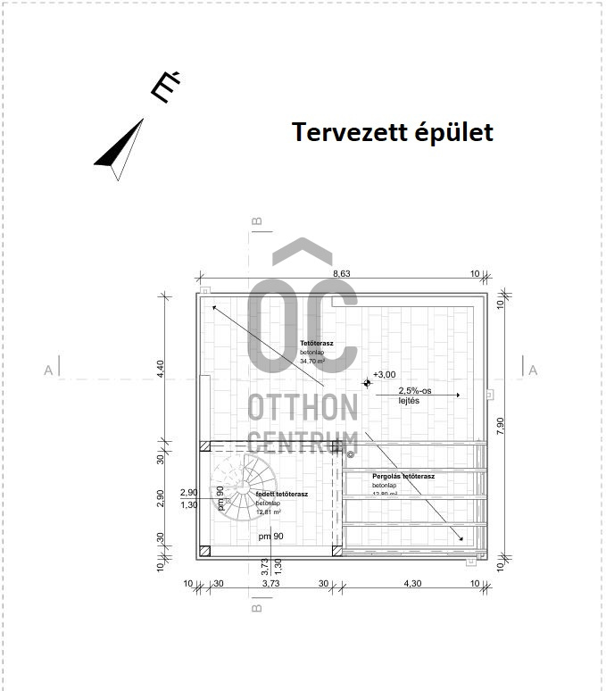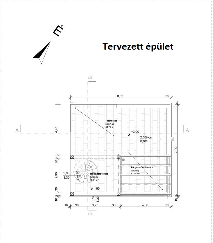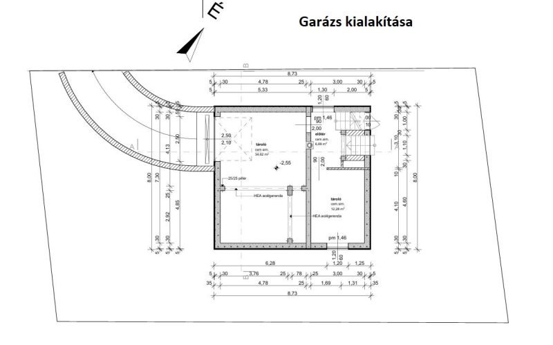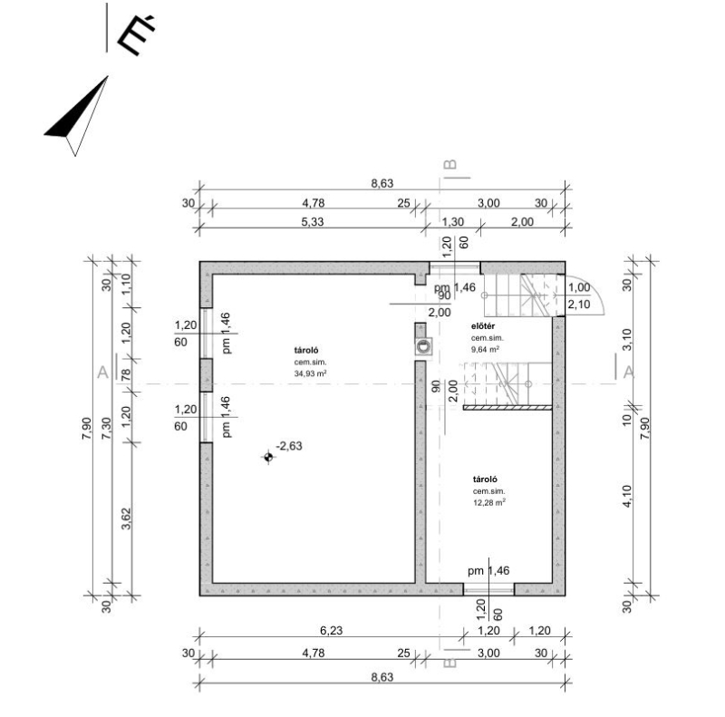 - Szuterén: 53,79 m² – tárolók és előtér ( itt van lehetőség garázs kialakítására)