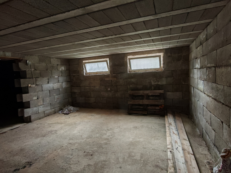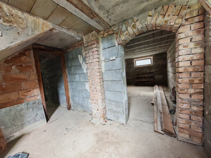 - Jelenlegi készültség: szuterén szint (pince) szerkezetkészen elkészült, zsalukőből építve