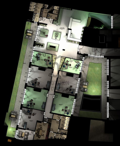 A 525 négyzetméteres alapterület és a 222,7 négyzetméteres terasz lehetőséget biztosít a kreatív és funkcionális tér kialakítására. Az ingatlanhoz tartozó 8 garázs férőhely pedig megkönnyíti a munkavállalók és a kliensek közlekedését, amit a környék kiváló ellátottsága és közlekedési csomópont közelsége tovább fokoz.