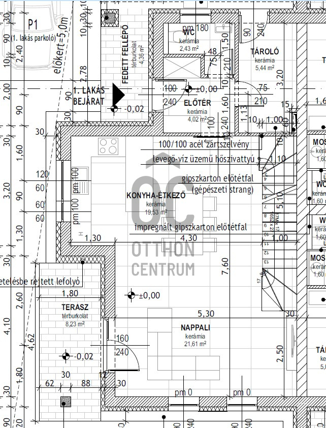 - 30cm porotherm tégla + 15cm homlokzati szigetelé