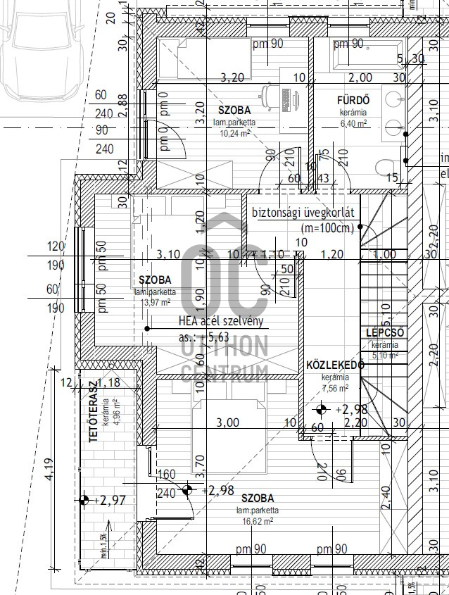 - antracit színű kolcolt lemez tető