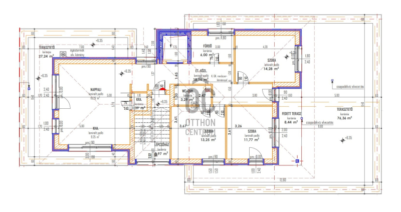 - 98 nm hasznos alapterülethez tartozik 9 nm fedett terasz és 104 nm - s panorámás tetőterasz
