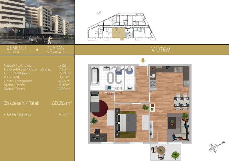 •A lakások hűtése és fűtése alacsony energia igényű, hőszivattyús rendszerű, mennyezeti technológiával biztosított