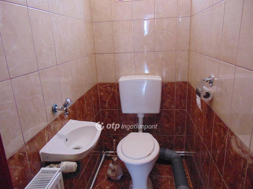 Földszint: klimatizált üzlethelyiség + kiszolgáló helyiségek (2 db. raktár, 2 db. tároló, 2 WC, kézmósó, iroda helyiség, kazánház), kamera és riasztórendszer.