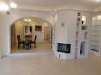 A nappali a ház központi tere, amely nagy üvegfelületeivel világos, hangulatos életteret biztosít, a beépített kandalló pedig otthonos melegséget és különleges atmoszférát teremt.