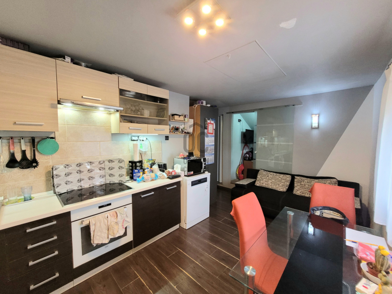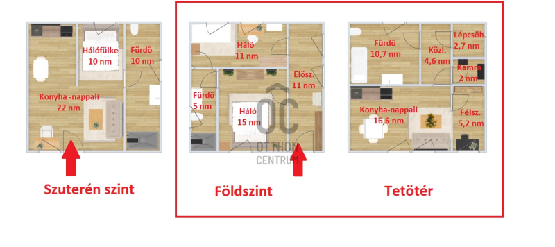 + A nagyobb. 82 nm-es lakótér két emeleten helyezkedik el, a konyha-nappalin kívül 2,5 szobája van, minden emeleten fürdőszobával.