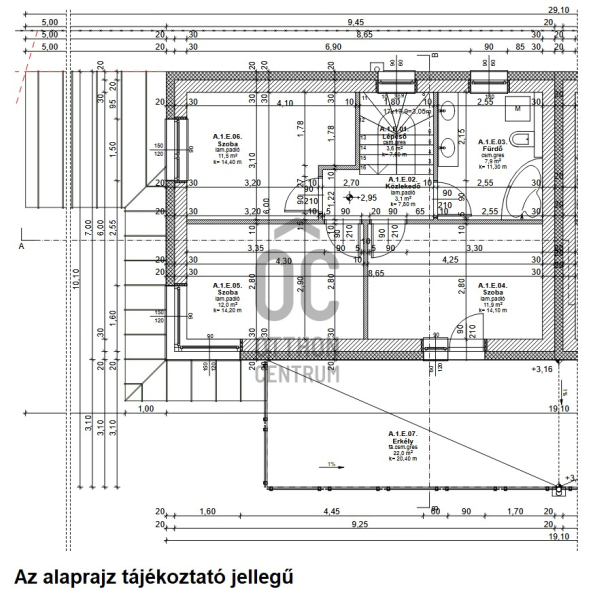 *tágas, 22 m²-es erkély, amely az egyik szobából közvetlenül elérhető