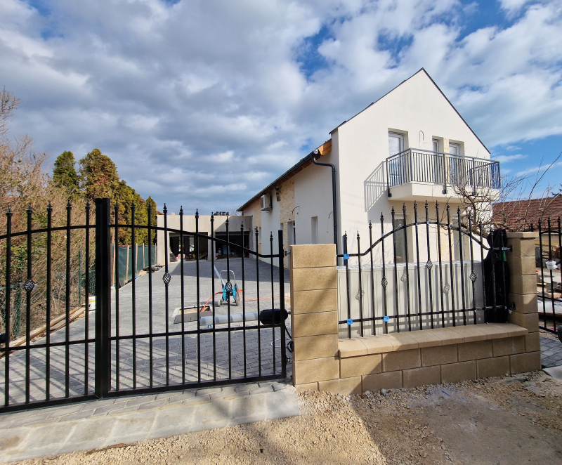 - Az utcafronton terméskőkerítés és automata kapu került elhelyezésre