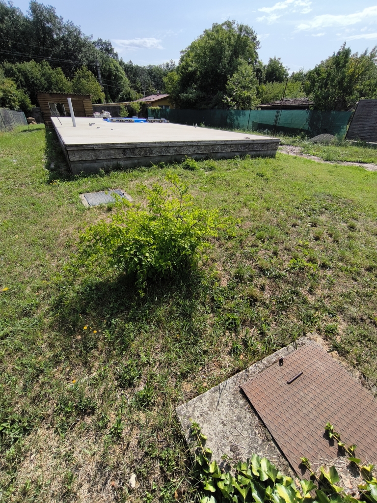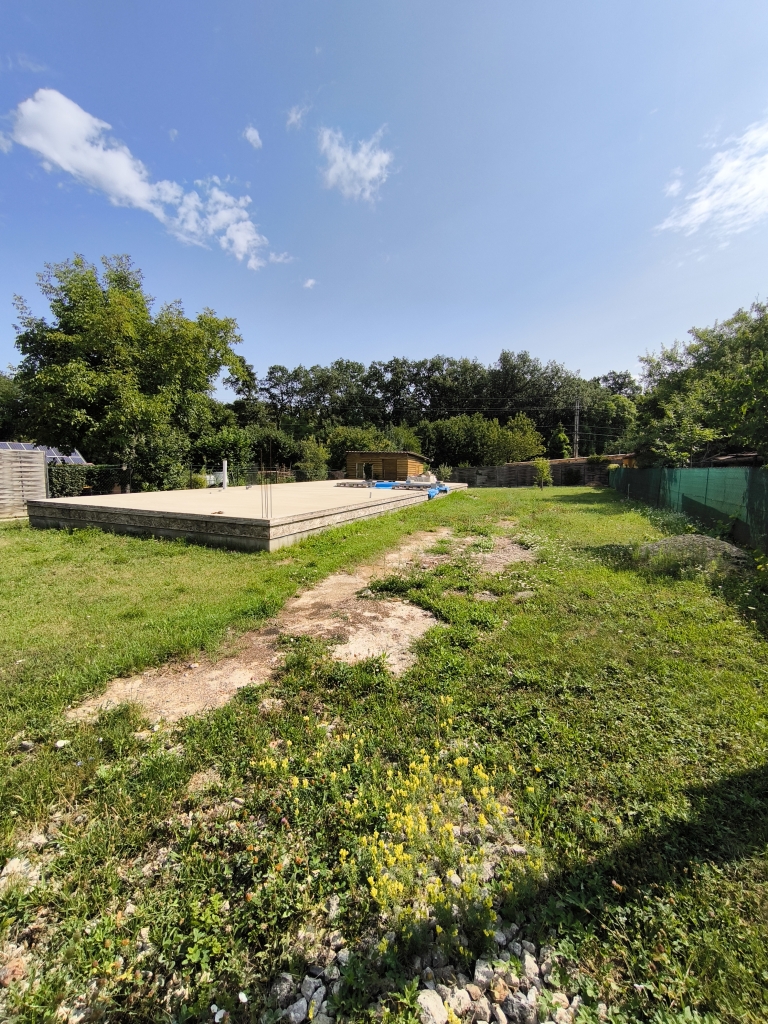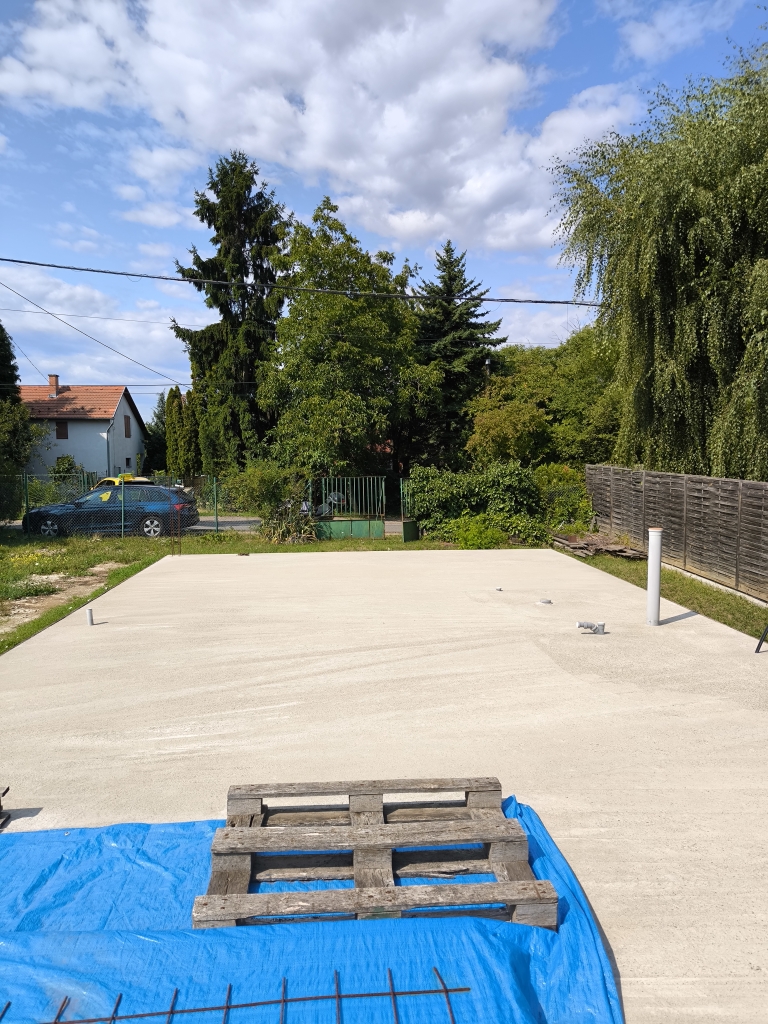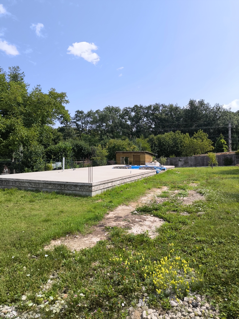 A telek beépítésére 2 szintes építmény tervezett. Ez alapján az épület (70 m2), terasz (20 m2) alapja, valamint egy 10 m2 területű pince már megépült.