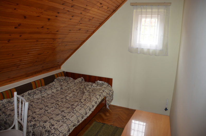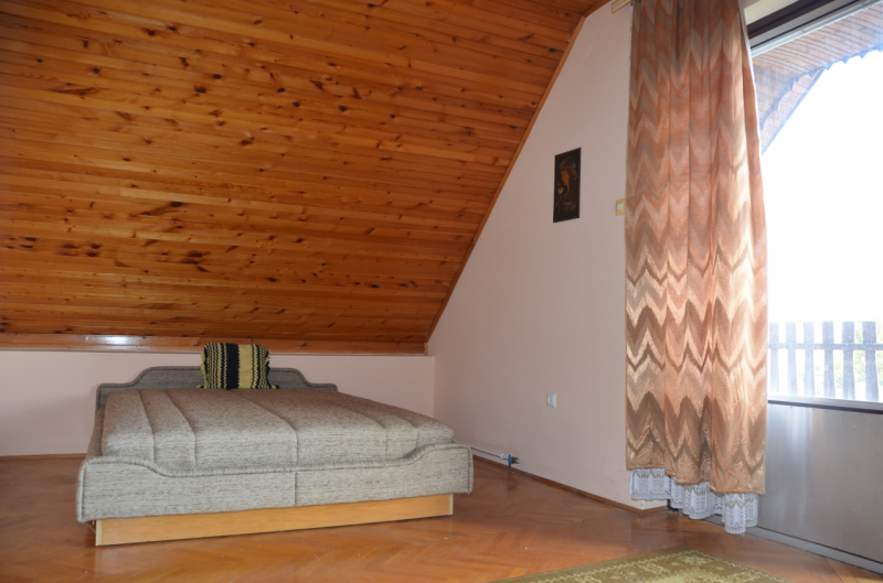 Emelet: 1 nagy és 2 kisebb szoba lambériázott mennyezettel, az egyik szobából fürdő kialakítható.
