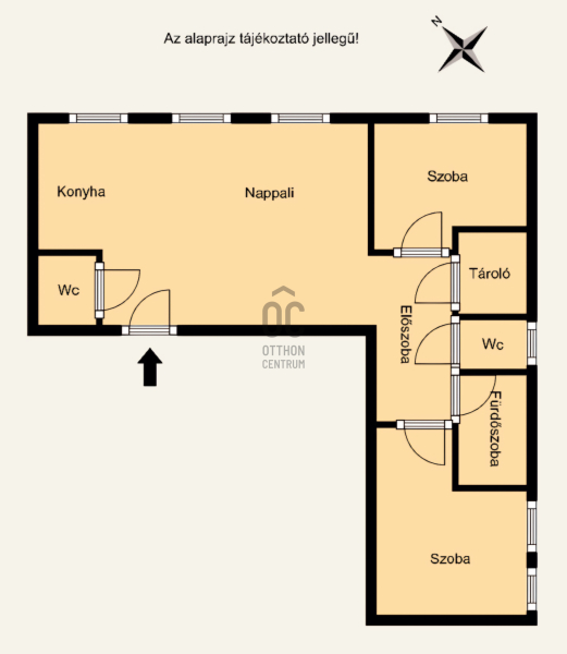 * Amerikai konyhás nappali+étkező, 2 szoba, fürdőszoba, külön wc, tároló
