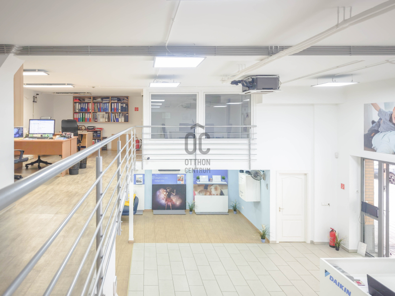 - Felosztása a galérián: egy légterű iroda, tárgyaló, raktár.
