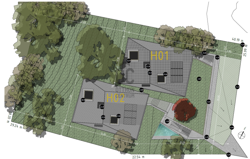 A területet 3 oldalról gyönyörű ősfás természetvédelmi terület határolja, így a természet intimitása kézzel fogható.