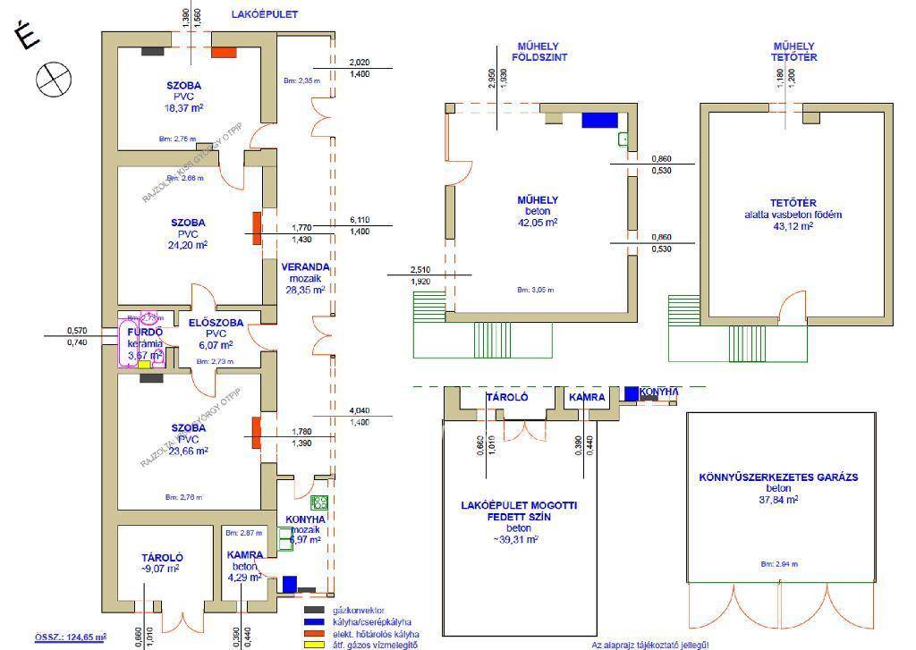 Fűtés: gázkonvektor, kályha, műhelyben cserépkályha.
