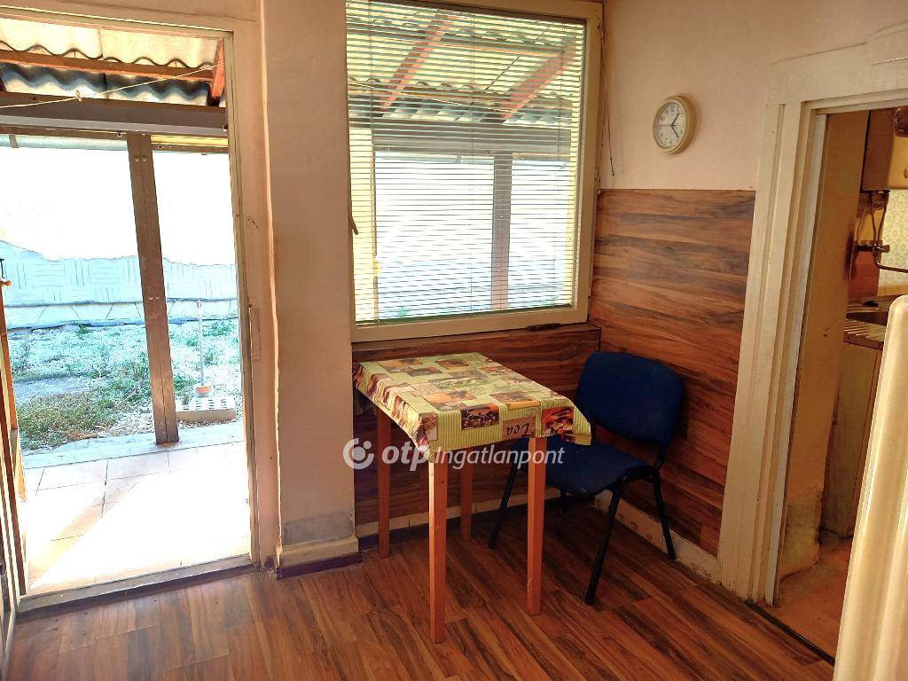 Csak az OTP Ingatlanpontnál! Csongrád-Csanád vármegyében Csongrádon, kis rezsivel fenntartható kis ház eladó. Az ingatlanban két szoba és egy félszoba van, ami korábban tárolóként volt hasznosítva. Ennek az egyik fala gipszkarton, így a mellette lévő szobával egybenyitva akár két kényelmes nagyobb méretű szobát lehet kialakítani. A fürdőszobában mosdókagyló, tusoló, WC, és automata mosógépnek kiállás is van. A meleg vizet villanybojler adja. A retró konyhában mosogató, gáztűzhely, konyhaszekrények adottak. Itt a meleg vizet villanyos vízmelegítő adja. A nagyszoba és a konyha között korábban volt egy ajtónyílás, ami be lett falazva. Ez kibontható, így a szobákba külön-külön is be lehet menni. A tökéletesen működő gáz- és vegyes tüzelésű kazánnal, nagyon gyorsan fel lehet melegíteni a helyiségeket. A központi fűtés hőleadását radiátorok biztosítják. Ez a kis ház, kis rezsivel kényelmes otthona lehet egyedülállónak, pároknak vagy egy kisebb családnak. A gázkazán kéménye szabvány szerint rendben van. A tetőszerkezet jó, az ereszek is rendben vannak, nem igényelnek felújítást. Az utcafronti és a szomszéd felöli falszakaszra pár éve nikecell szigetelés került. Az ingatlan minden közművel ellátott, minden működik. A szobák fala, a belső terek, igény szerint felújítandók, de összességében a ház lakható állapotú. A ház folytatásában tárolásra alkalmas melléképületek vannak. Az 567 m2-es telek szépen ki van takarítva, kitűnő lehetőséget kínál pihenésre, méretéből, jó minőségű földjéből adódóan tökéletesen alkalmas kertészkedésre, zöldség, gyümölcstermesztésre, és állattartásra. Szóval önellátás megoldva! Kiváló lokáció, 1-1,5 km-en belül PENNY, Lidl, piac, posta, gyógyszertár, orvosi rendelő, iskola, óvoda, benzinkút megtalálható. Kedvező áron, nagyon jó fekvésű telken, egy kiváló tájolású ingatlan lehet az Öné. Hívjon bizalommal!