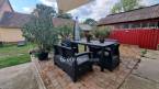 A ház folytatásában kétállásos garázs és tároló helyezkedik el. Az utcafronti lemez kerítés 3 éve épült.