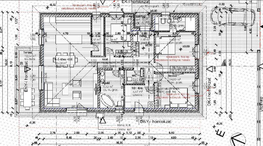- Falazat: 30 cm Ytong tégla + 15 cm hungarocell hőszigetelés