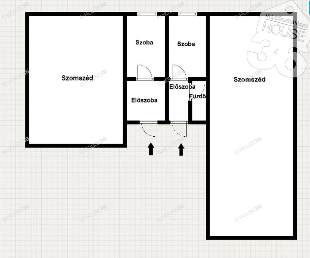 -2 bejáratú, külön-külön 1-1 db szoba, 1-1 db előszoba, 1 db kialakítandó fürdőszoba.