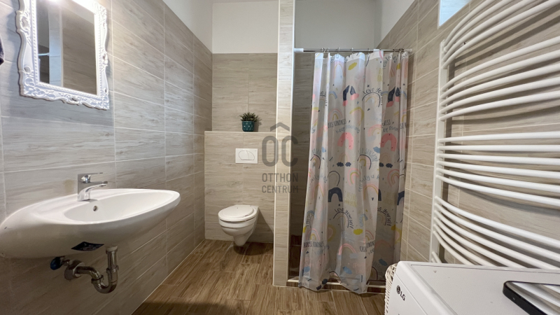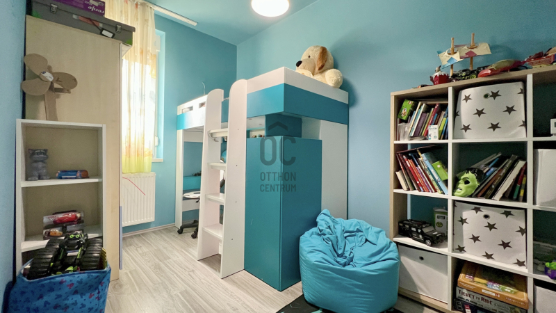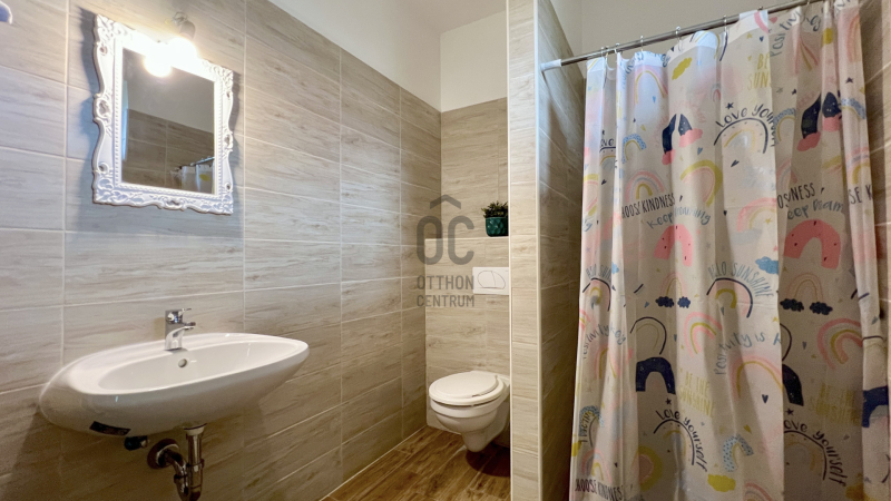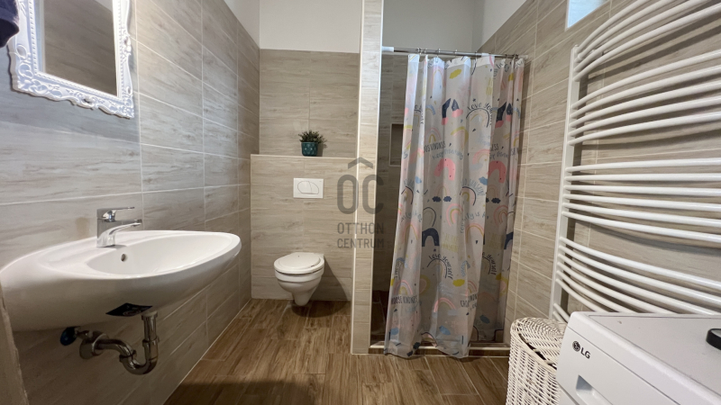 A szülői hálószobához külön tartozik egy gardrób helyiség és egy zuhanyzó-WC helyiség.
