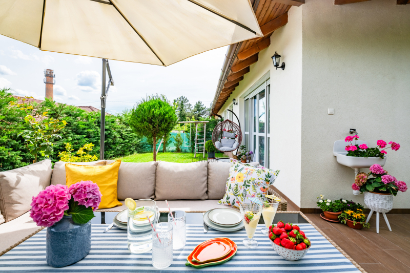 A házhoz tartozó 36 négyzetméteres terasz ideális helyszín a pihenésre és a szabadban eltöltött időre.