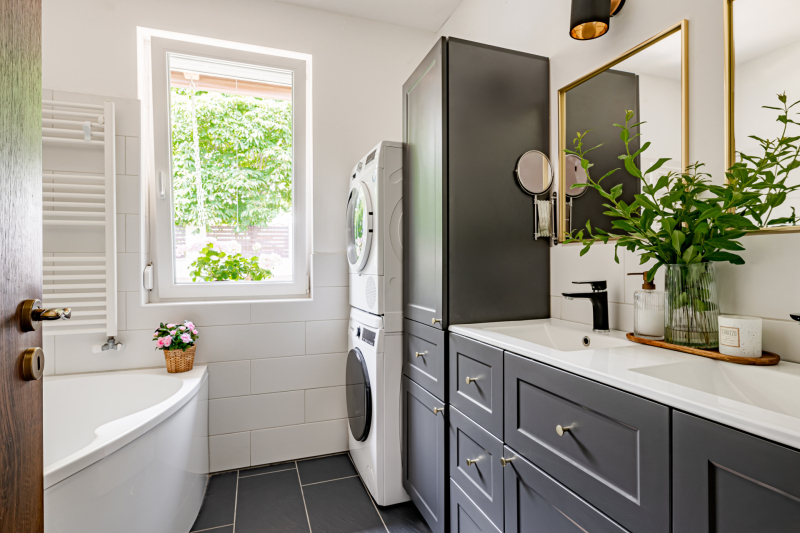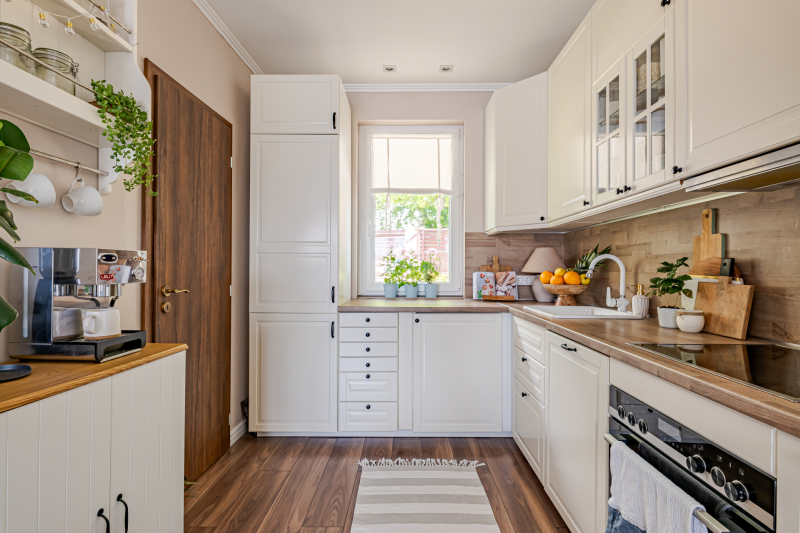 Az ingatlanban beépített bútorok és szekrények is találhatóak, amelyek praktikus tárolási megoldásokat kínálnak.