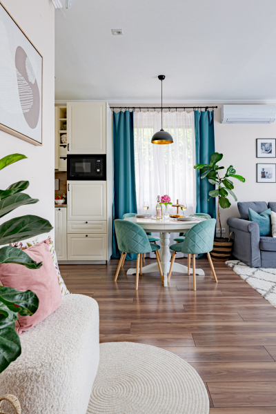 Az ingatlanban 3 szoba található plusz nappali, a nappali különösen világos és barátságos, köszönhetően a nagy ablakoknak és a minimalista kialakításnak.